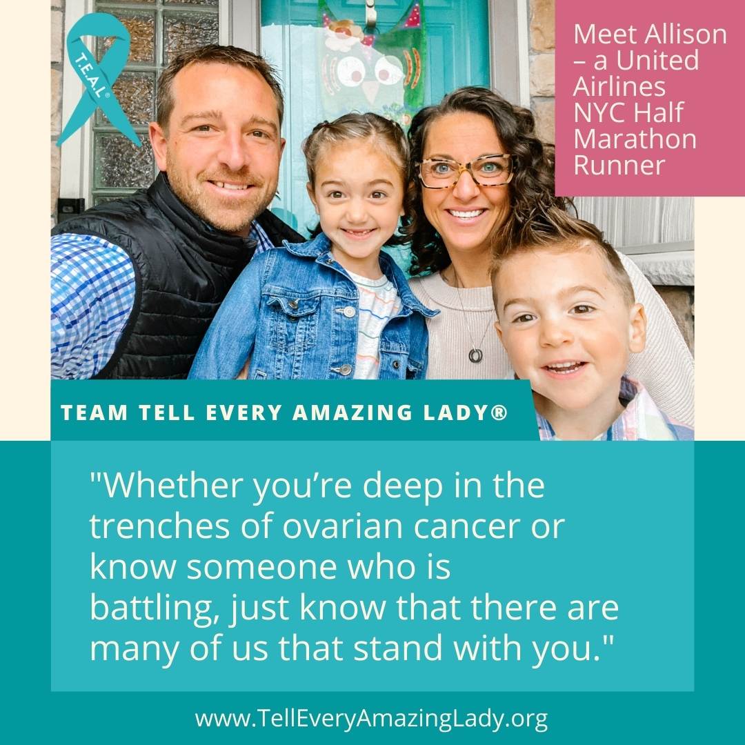 I started running with one goal in mind – to represent ovarian cancer. After not receiving a bib for the marathon on my own terms, I began looking at the charities listed. T.E.A.L.®’s logo was staring at me, and I knew it was a sign that, “Here’s my chance.”